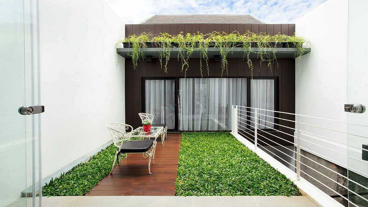 Pada rumah kontrakan yang sudah dibangun dengan sederhana, kebersihan dan kerapian halaman bisa menjadi nilai plus. Buat halaman terkesan luas dengan tidak menambah banyak ornamen. Pilih cat yang sejuk seperti warna hijau untuk meningkatkan tampilan rumah kontrakan.