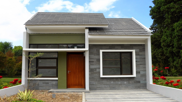 Desain rumah satu kamar dapat dibuat menarik dengan batuan alam yang dipasang di sebagian dinding depan. Selain itu, pintu besar dan jendela kaca clear dapat menarik calon penyewa. Ruangan dalam dapat dibuat sederhana. Jenis desain ini cocok untuk rumah kontrakan yang disewakan tanpa tambahan furnitur bawaan.